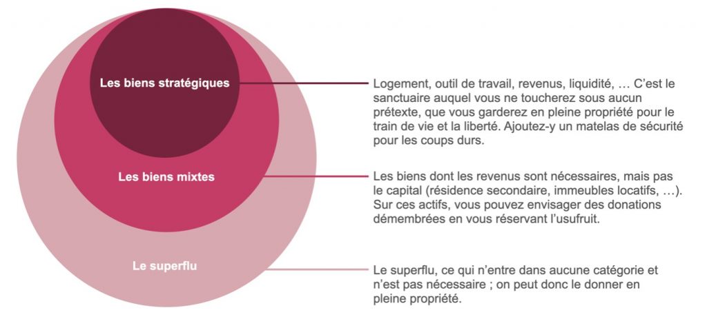 Conseil : Au moment du prélèvement avant partage, voire même avant de donner, distinguez trois cercles de votre patrimoine :