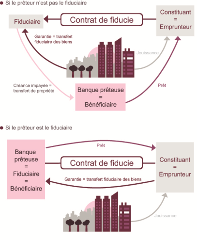 La fiducie s’est ensuite développée auprès des particuliers, leur permettant de garantir un emprunt. La « fiducie garantie » est ainsi un contrat par lequel une personne, l’emprunteur, transfère la propriété de biens constitutifs de la garantie à un fiduciaire, éventuellement le prêteur, afin de garantir l’emprunt. Il ne s’agit ici que d’une modalité de garantie et il convient, en tout état de cause, de s’assurer du bien-fondé économique de l’opération de financement.