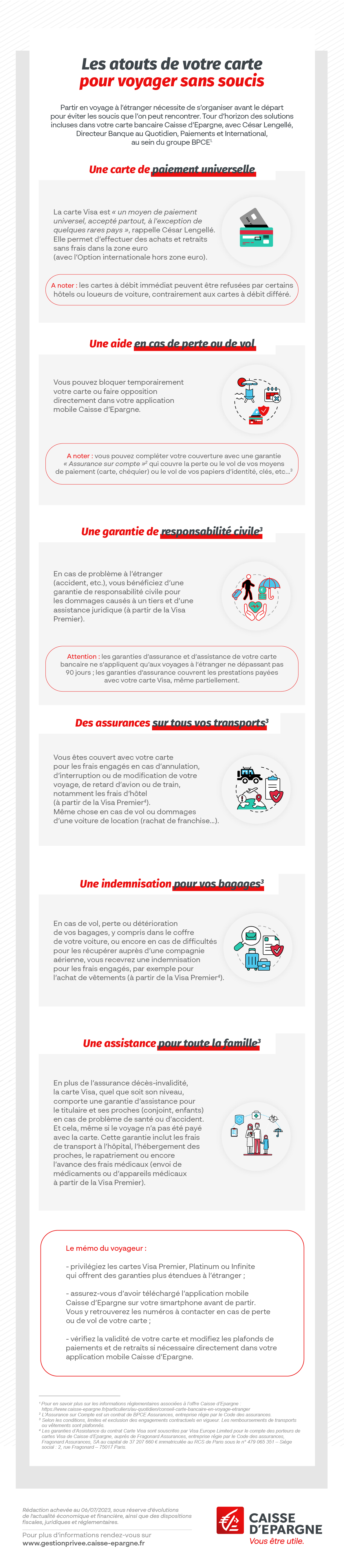 C’est les vacances et vous prévoyez sans doute d’utiliser votre carte bancaire en voyage… Quels sont les atouts de votre carte pour prendre le large en toute tranquillité ? Réponse en infographie.